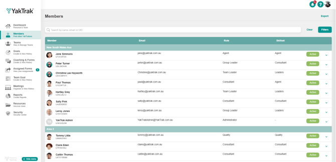 - From the main menu, select 'Members'. You will be presented with all the team members you have access to updating.
