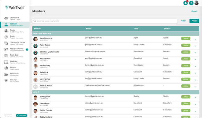 Roles are an important part of the YakTrak platform. They ensure that the right set of operating rhythms are attached to the team member such as the right coaching cadence and forms, and other leadership development activities. If you don't see the coaching type you desire for a team member, often it is because the team member role is incorrect and needs to be updated.