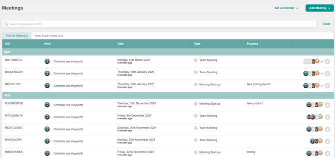 - Click on the meeting you would like to open, you will be taken to the following screen.