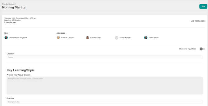 This article show how to add notes to an existing meeting after the meeting has been completed such as actions or additional information.