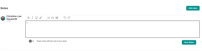 You also have the option to share notes by switching the toggle on "Share notes with the rest of your team" above.
